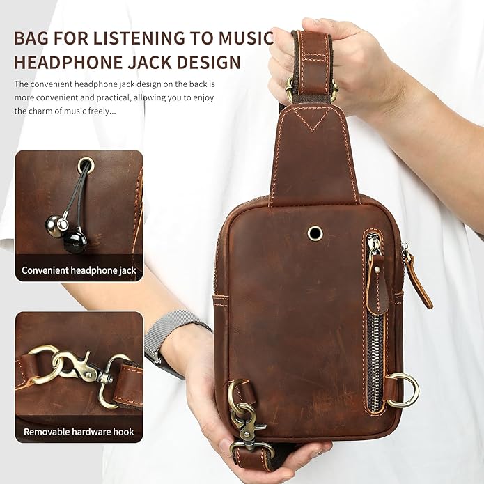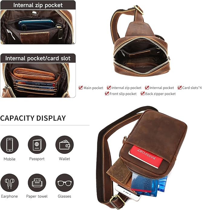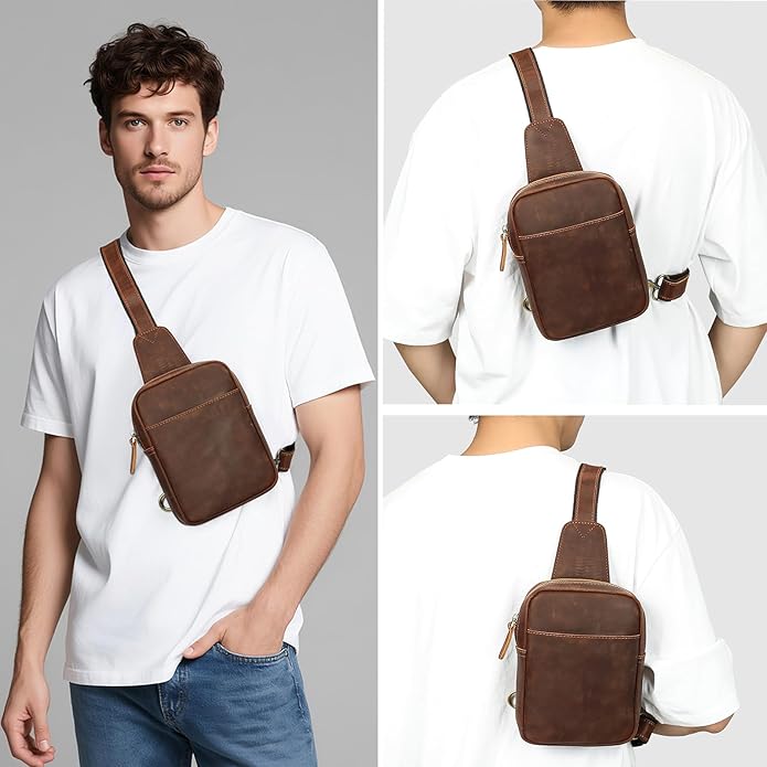 - Material: This sling bag is made of durable crazy horse leather and durable fabric. It is a great present for birthday, valentine's day, father's day. Perfect for business professionals or travelers want to make a fashion statement and also a good gift for your family.