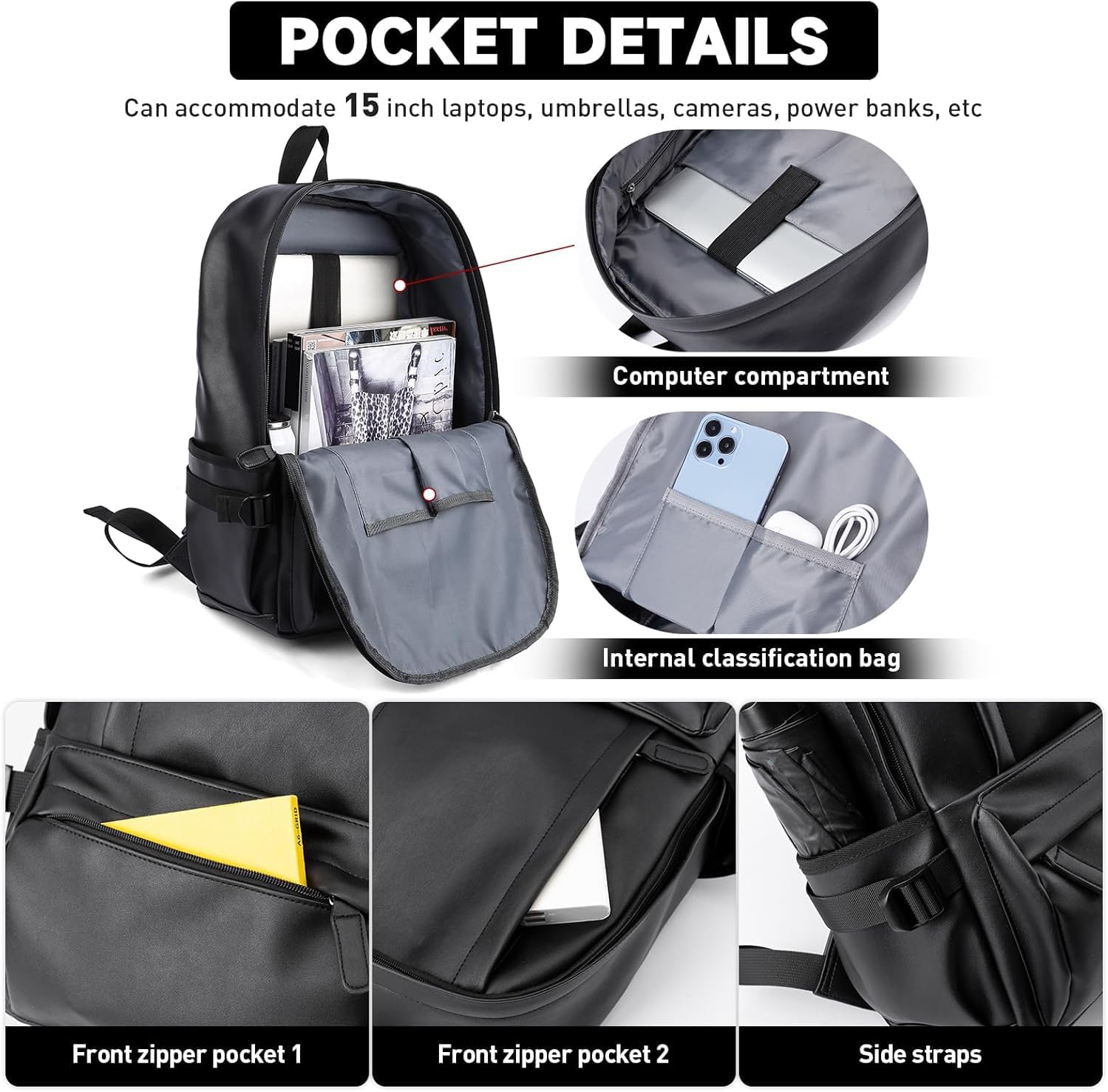 - Laptop Leather Backpack for Men Women Students: Waterproof and Durable and Lightweight high quality soft PU Leather (similar to real leather), Smooth Zipper. Excellent stitching technic makes the men women student black leather backpack more strong and sturdy
