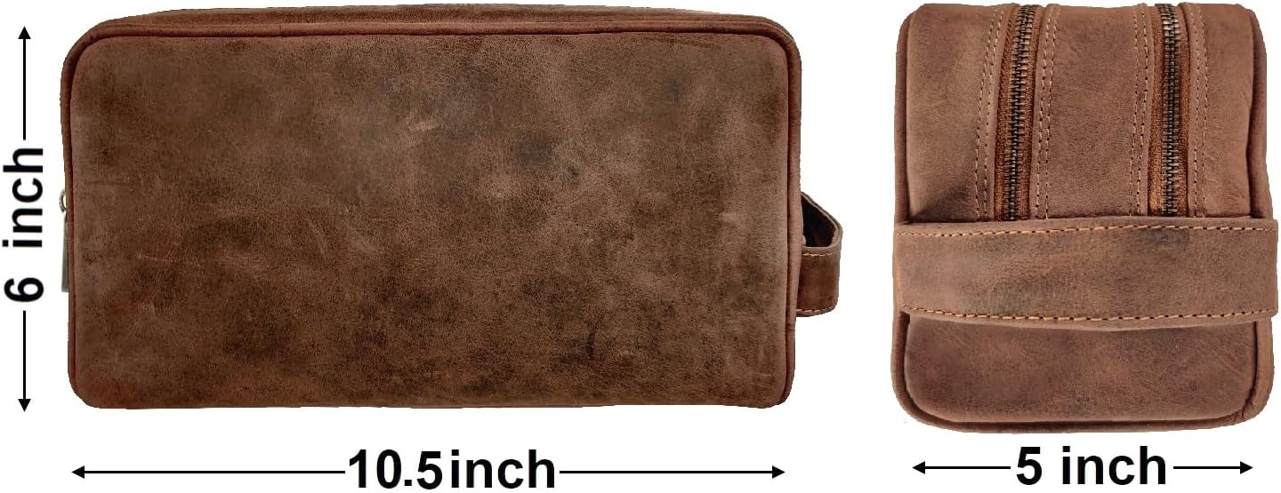 - ✅ FULL GRAIN BUFFALO LEATHER: Handcrafted from ethically sourced full grain buffalo leather, this leather toiletry bag ages beautifully with a rich patina.